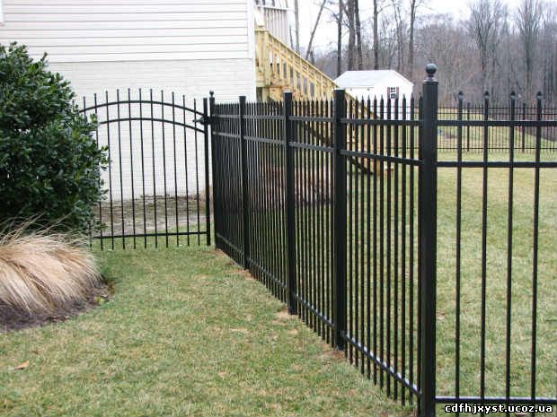 * Секции из профиля 20х20 мм, 40х25 мм. и полосы 40х4 мм. Декоративные вставки из полосы 20х4 мм. Столбы между секциями из трубы 50х50 мм.
