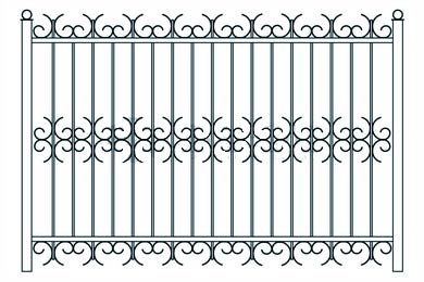 * Секции сварных заборов изготавливаются из профильной трубы 15х15 мм, 40х25 мм. и полосы 40х4 мм. Декоративные вставки из полосы 16х4 мм. Столбы между секциями из трубы 50х50 мм.